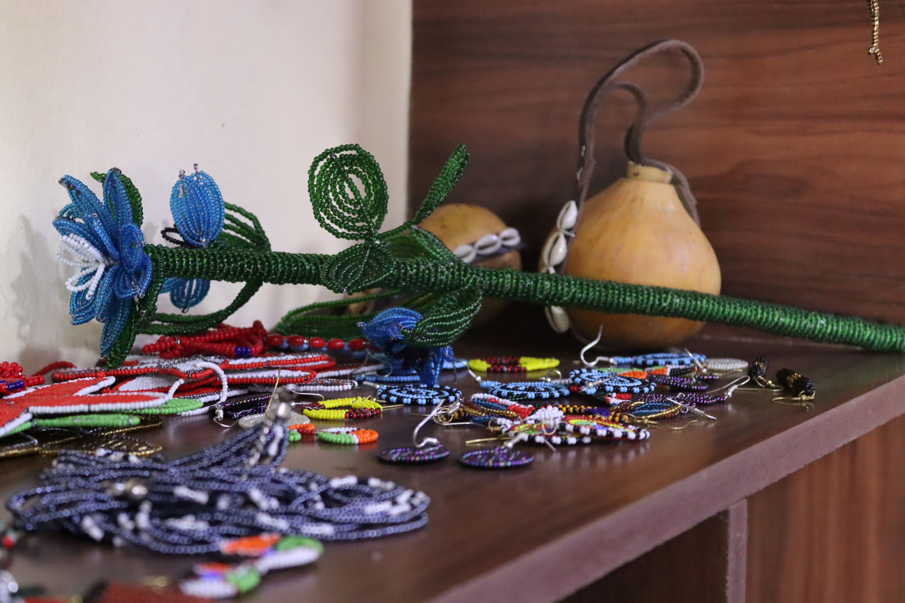 Next door to the NCDF office lies the Naboisho Women Craft Centre. The enterprise reflects the vision of increasing household resiliency in the village by giving women the possibility to create and sell self-made beading products. Besides empowering women's position in society, extra income from the shop supports the household when times are uncertain, for instance when the grasses disappear in the dry season.